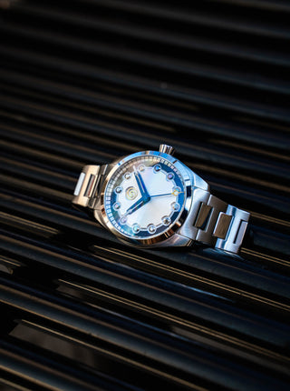 - Filled with Swiss Super-LumiNova® BGW9, that gives out a cool blue glow.